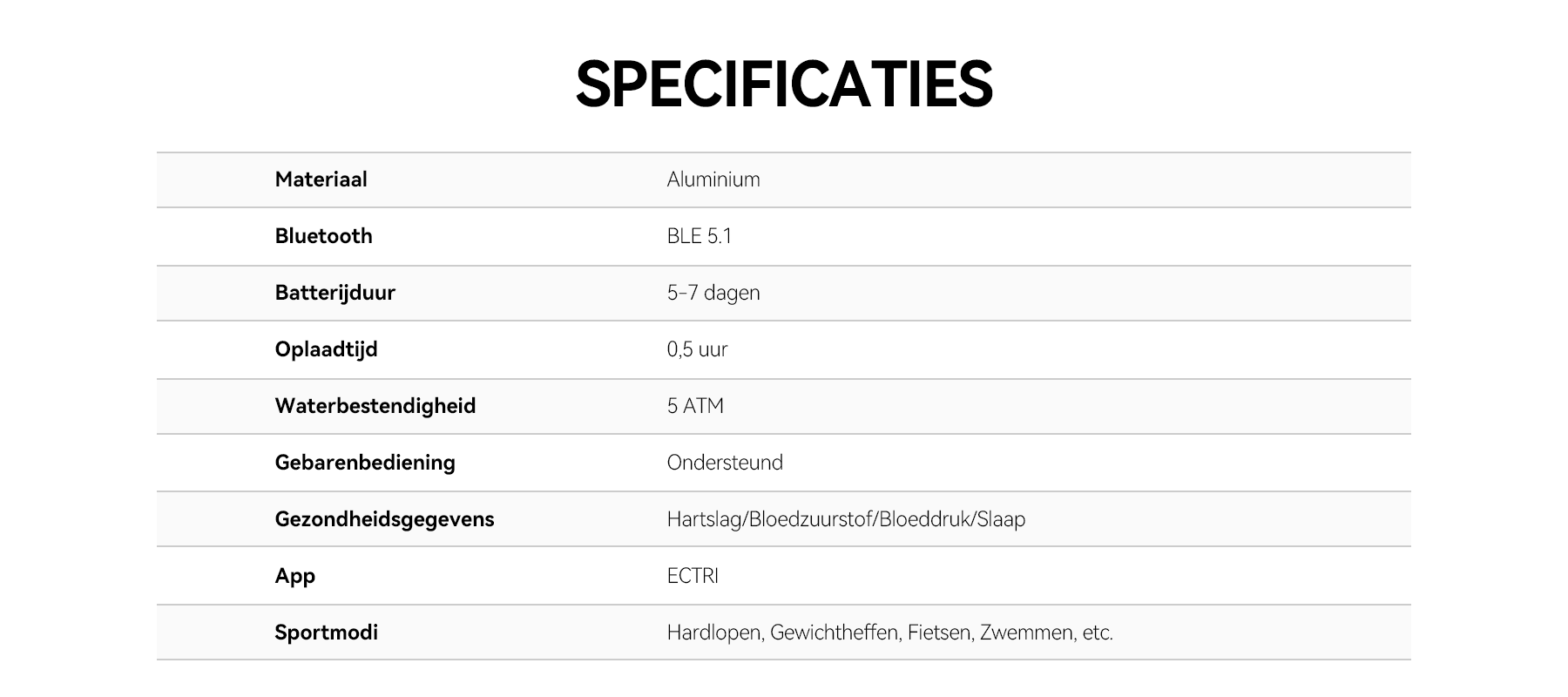 • Veelzijdig Fitnessbeheer: Optimaliseer je trainingen met diverse sportmodi en uitgebreide data-analyse via de app.